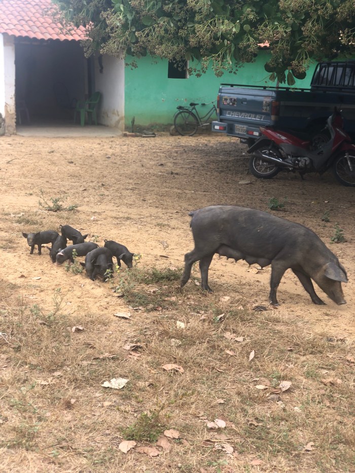 O céu é lindo, o fim de tarde de cores incríveis. As casas simples parecem sair de um quadro. Tanta simplicidade, comida de tempero forte preparada com animais mortos pouco antes. Animais andando pelas ruas, carne pendurada na árvore. Trabalho? Pouco. Tempo ocioso? Muito. Tanto contraste que constrange.